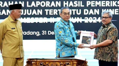 “Pemeriksaan ini penting untuk mengidentifikasi kelemahan-kelemahan yang perlu dievaluasi,” ujar Muhidi saat menghadiri acara penyerahan Laporan Hasil Pemeriksaan (LHP) dengan Tujuan Tertentu dan Kinerja Semester II Tahun 2024, Selasa (31/12) di Kantor BPK Perwakilan Sumbar.
