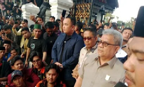 Setelah lebih dari satu jam orasi, Ketua DPRD Sumbar Muhidi bersama para wakil ketua, Evi Yandri, Nanda Satria, dan Iqra Chisa, turun langsung menemui massa aksi. Turut hadir pula seluruh ketua fraksi DPRD Sumbar, Wakil Gubernur Vasco, serta Kapolda Sumbar.