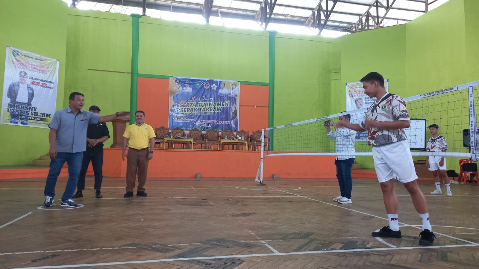 Turnamen Sepak Takraw antar club se-Sumbar dibuka secara resmi Bupati Pasaman Benny Utama, yang diwakili Ketua KONI Pasaman, Tommy Irawan Sandra, bertempat Di GOR Tuanku Rao Lubuk Sikaping, Selasa, (31/10/2023).
