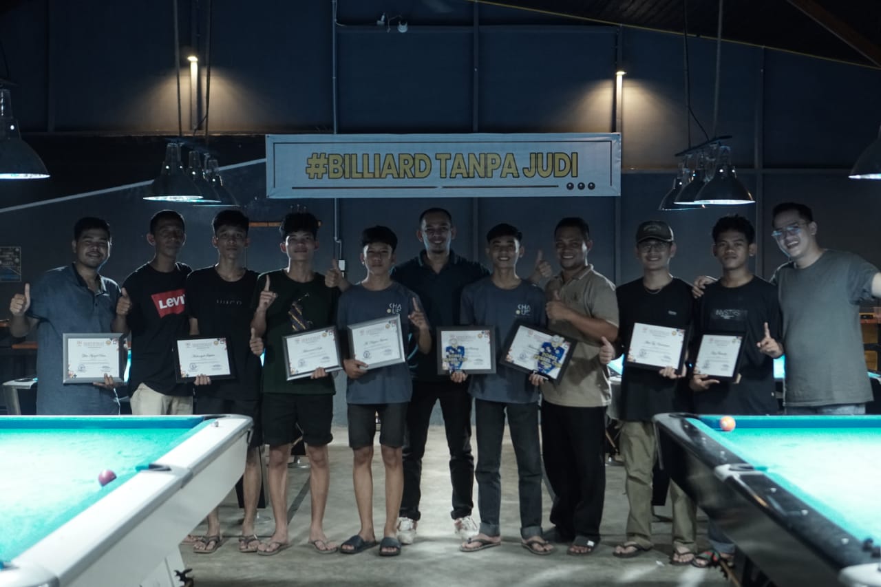 PESSEL — Bintang keluar sebagai juara I di Nine Ball Tournament Billiard POBSI Kabupaten Pesisir Selatan, Minggu (21/4/2024) malam.