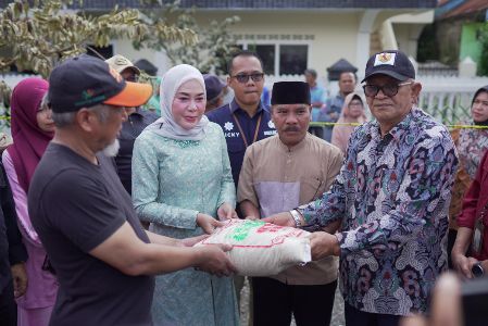 Selain bantuan uang, Ny. Emiko juga menyerahkan bantuan dari Dinas Sosial Kabupaten Solok dan Baznas Kabupaten Solok kepada pemilik rumah, berupa beras, mke instan, telur, dan terpal.