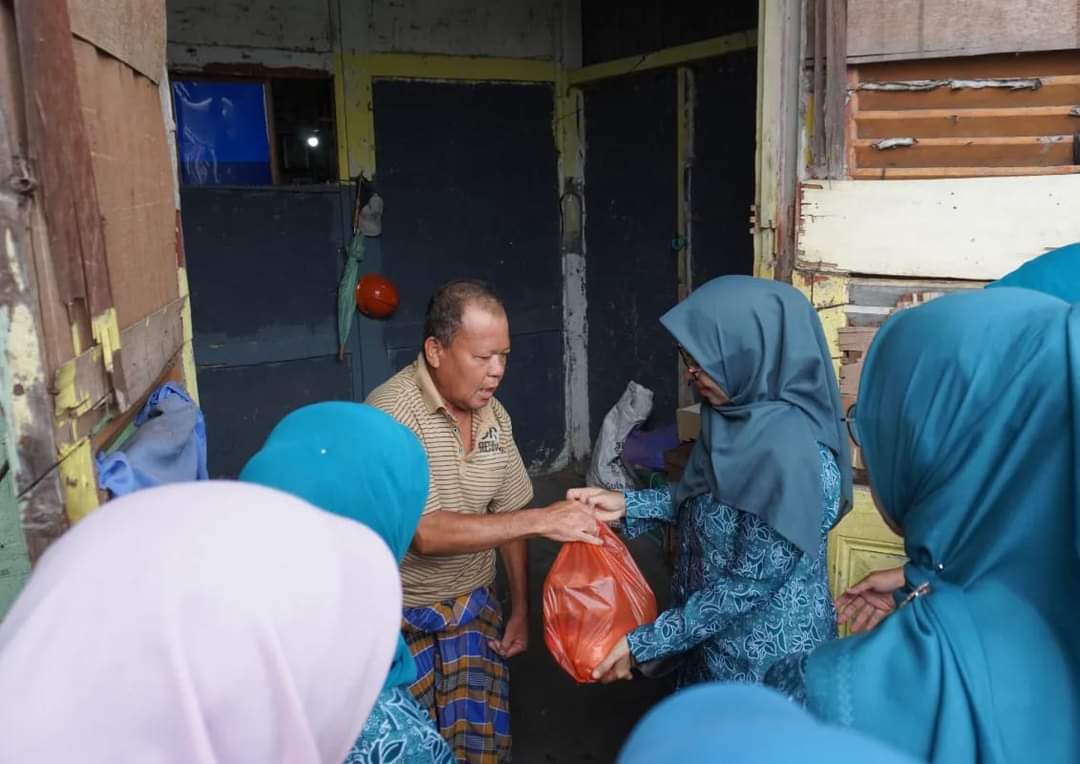 Dengan berkeliling ke rumah warga sasaran, penyaluran sembako ini langsung diantarkan Ketua TP PKK, Sri Hidayani Sonny, S.E, Akt, Ketua Bidang I, dr. Fitria Winarno, M. Biomed, Sp.PA dan beberapa pengurus PKK lainnya.