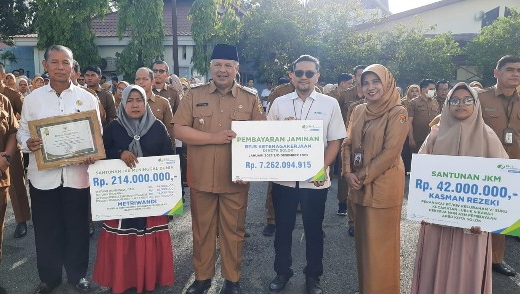 BPJS ketenagakerjaan juga menyerahkan santunan meninggal dunia program (JKM) kepada ahli waris Almarhum Kasman Rezeki sejumlah Rp42 Juta.