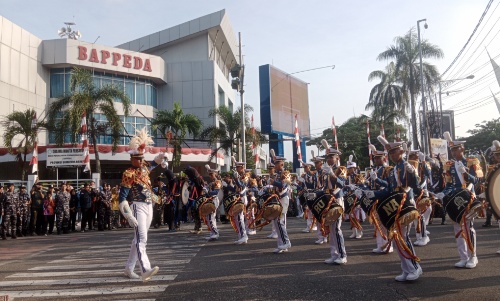 Warga tumpah ruah di tepi jalan untuk menyaksikan penampilan formasi dan irama genderang suling yang khas. Aksi para taruna ini tidak hanya memamerkan keterampilan baris-berbaris dan musik militer, tetapi juga menjadi ajang interaksi langsung antara prajurit masa depan TNI AL dengan publik.