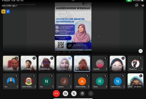 Webinar yang dilaksanakan secara daring melalui Google Meet pada Selasa (7/1) ini mengangkat tema “Harnessing Data Power: Statistic for Smarter Entrepreneur”. Acara menghadirkan narasumber utama, Ketua Program Studi Agribisnis Fakultas Pertanian UM Sumatera Barat, Revi Ernanda, SP, M.Si.