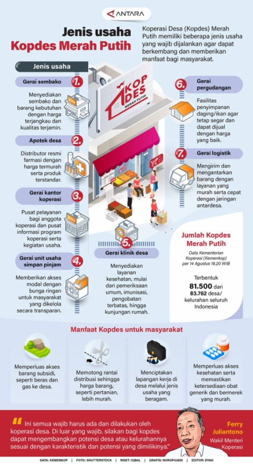 MINANGKABAUNEWS.com, INFOGRAFIS — Koperasi Desa (Kopdes) Merah Putih memiliki beberapa jenis usaha yang wajib dijalankan agar dapat berkembang dan memberikan manfaat bagi masyarakat. (ANTARA)