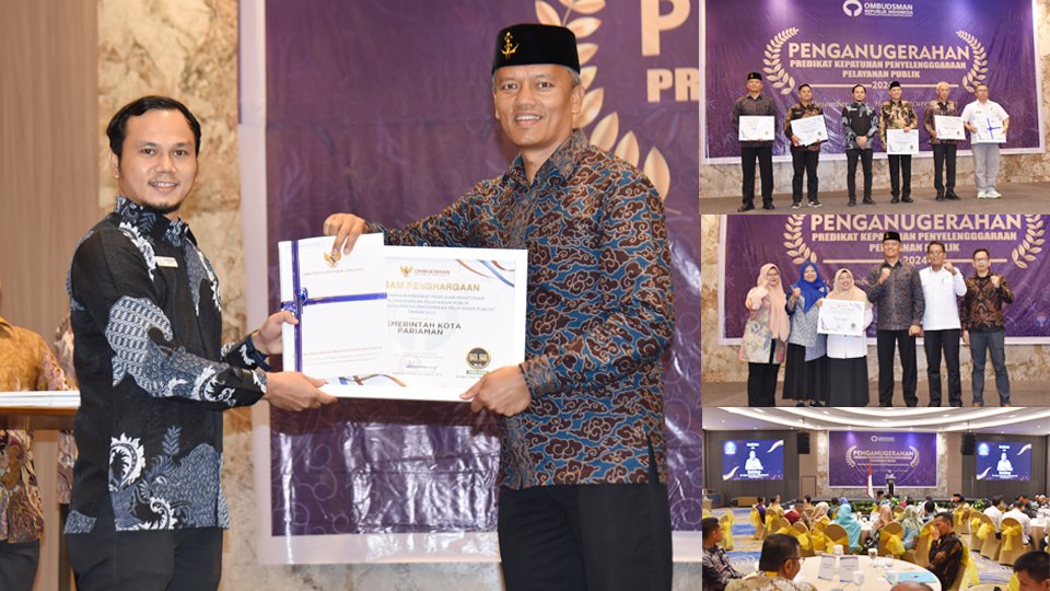 “Alhamdulillah, di Tahun 2024 ini kita dapat mempertahankan Zona Hijau atau Kualitas Tertinggi Pada kepatuhan pelayanan publik di Kota Pariaman dengan nilai 90,98 (A) atau naik 0,34 dari tahun 2023 sebesar 90,64, dan menempati nomor 4 tertinggi tingkat Kota di Sumbar, dan nomor 10 dari 19 Kabupaten dan Kota yang ada di Sumbar,” ujar Pj Wali Kota Pariaman Roberia setelah menerima penghargaan ini.
