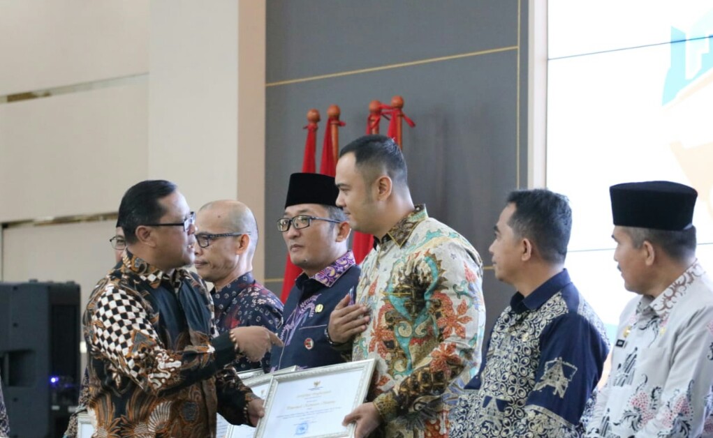 Ketua KPK diwakili Deputi Pendidikan dan Peran Serta Masyarakat Dr. Ir. Wawan Wardiana M.T menyerahkan penghargaan kepada Bupati Sijunjung disaksikan Gubernur Sumbar Mahyeldi.