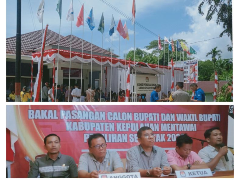 Adapun proses pendaftaran yang dibuka selama tiga hari, KPU menerima pencalonan pada Rabu 28 agustus 2024, satu pasangan bakal calon Maru-Binsar Saleleubaja mendaftar di KPU Mentawai yang diusung oleh partai Gerindra dan Hanura.