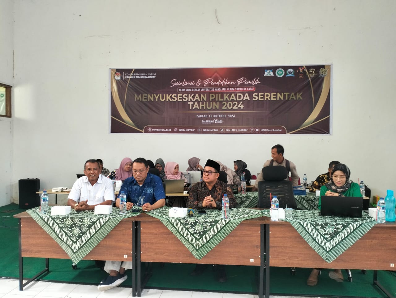 MINANGKABAUNEWS.COM, PADANG, — Komitmen Universitas Nahdlatul Ulama Sumatera Barat (UNU SB) bekerjasama KPU dalam menyukseskan Pilkada serentak tahun 2024, dengan mengadakan sosialisasi dan pendidikan pemilih dalam Pilkada serentak, Rabu 16 Oktober 2024.