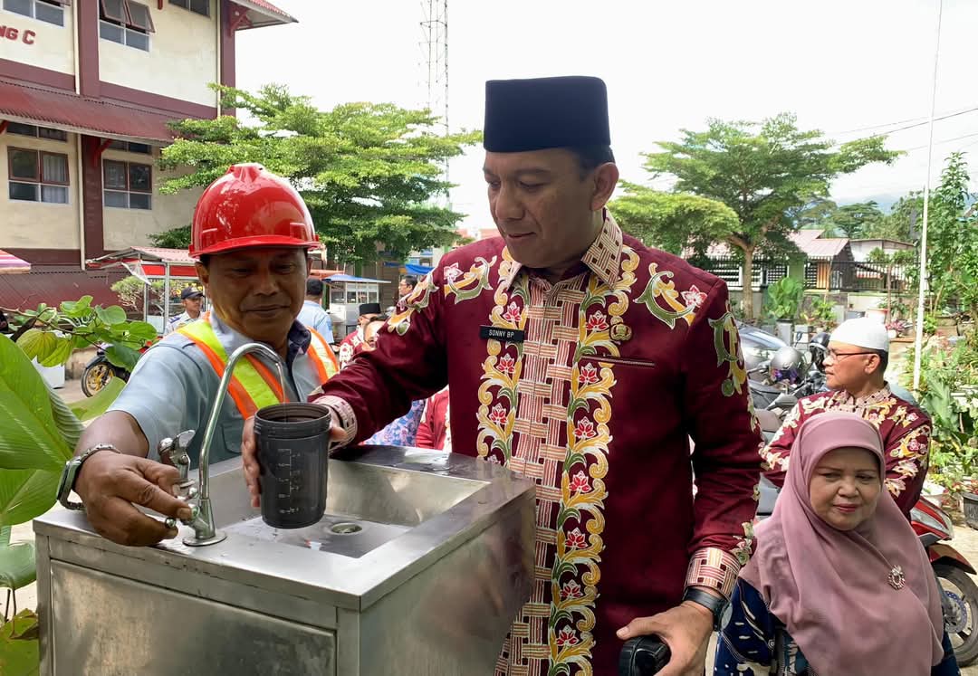 Pj. Wali Kota, Sonny Budaya Putra, A.P, M.Si, memuji terobosan ini setelah mencoba langsung air dari KASM di SMPN 1, Kamis (2/1/2025).