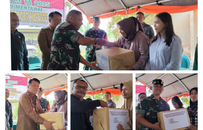 Pembagian makanan tambahan turut didampingi Dansatgas TMMD Ke 123 Letkol Inf Restu Petrus, Wakil Bupati Mentawai Jakop Sagurug, Ketua DPRD Mentawai Ibrani Sababalat, Sekda Mentawai Martinus Dahlan, Anggota DPRD James Sibarani dan jajaran lainnya.