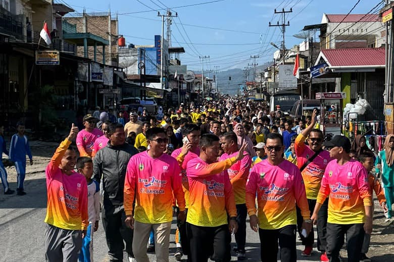 Pasaman, Minangkabaunews com – Bupati Pasaman melepas peserta Jalan Sehat di Lapangan Sepak Bola Galugur Saiyo Tapus, Sabtu (9/08/2025).