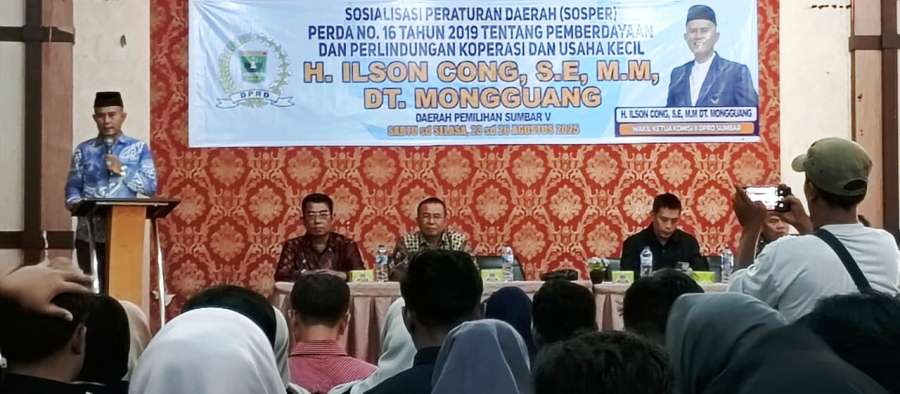 MINANGKABAUNEWS.COM, PAYAKUMBUH – Anggota DPRD Provinsi Sumatera Barat, Ilson Cong, memastikan bahwa legislatif terus berupaya menampung aspirasi dan memastikan kelangsungan program pemerintah. Salah satunnya memberikan perlindungan terhadap koperasi dan Usaha Kecil Menengah (UKM).