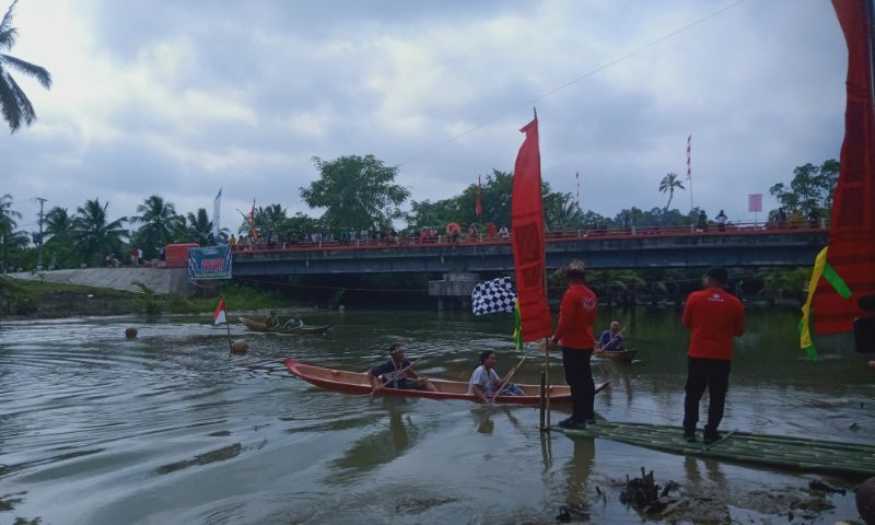 Nampak dilokasi kegiatan ratusan warga ikut menyaksikan kegiatan lomba dengan memadati pinggiran sungai dan jembatan merah. (Tirman)