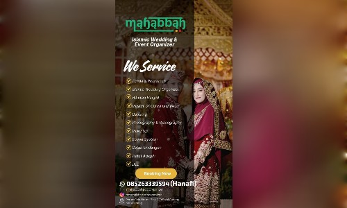 MINANGKABAUNEWS.com, PADANG — Menjawab kebutuhan calon pasangan muslim yang menginginkan pernikahan syar’i tanpa mengesampingkan estetika dan kemewahan, Mahabbah Islamic Wedding & Event Organizer hadir sebagai mitra terpercaya. Dengan fokus pada nilai-nilai Islami, kekeluargaan, dan profesionalitas, Mahabbah menyediakan layanan full-service untuk menggarap seluruh detail acara, mulai dari konsep hingga eksekusi.