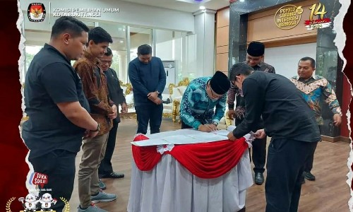 Dimana penandatangan NPHD tersebut dilakukan oleh Wakil Wali Kota Bukittinggi Marfendi, yang bertindak selaku Pelaksana harian (Plh). Wali Kota Bukittinggi bersama Ketua KPU Kota Bukittinggi Satria Putra.