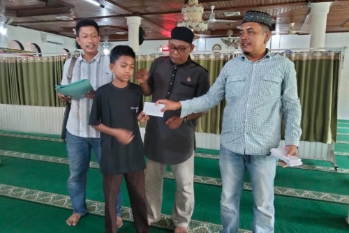 Penyerahan santunan itu diberikan dihadapan orang tua anak atau keluarganya, dan sejumlah pengurus masjid.