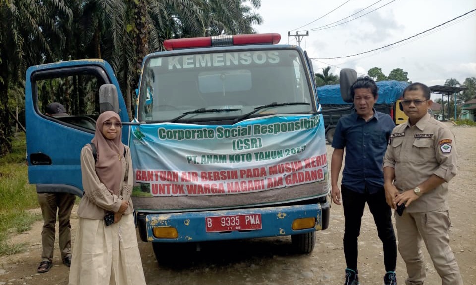PASAMAN BARAT – Bentuk kepedulian terhadap masyarakat di sekitar perusahaan yang terdampak kekeringan akibat musim kemarau panjang, PT Anam Koto menyalurkan bantuan air bersih kepada warga Nagari Aia Gadang Barat, Kecamatan Pasaman, Kabupaten Pasaman Barat.