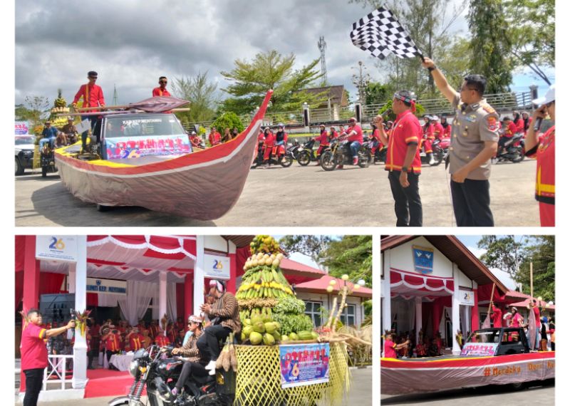 Dalam moment itu, Asisten I Pemkab Kepulauan Mentawai Lahmuddin Siregar bersama dengan Kapolres Mentawai AKBP Rory Ratno melepas konvoi Pawai dari titik Start Tugu Sikerei km 9 menuju Kantor Bupati untuk penilaian oleh dewan Juri dan bergerak ke Km 0 sebagai titik finish. Saptu (04/10/2025)