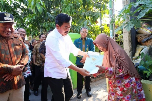 Menteri ATR/Kepala BPN mendatangi rumah-rumah warga di dalam gang Desa Sedati Gede, Sidoarjo, Jawa Timur, pada Jumat (20/10) untuk menyerahkan Sertifikat Hak Milik kepada masyarakat. Kehadiran Menteri ATR/Kepala BPN di Kota Delta ini juga untuk memastikan proses penyertifikatan tanah berjalan lancar.