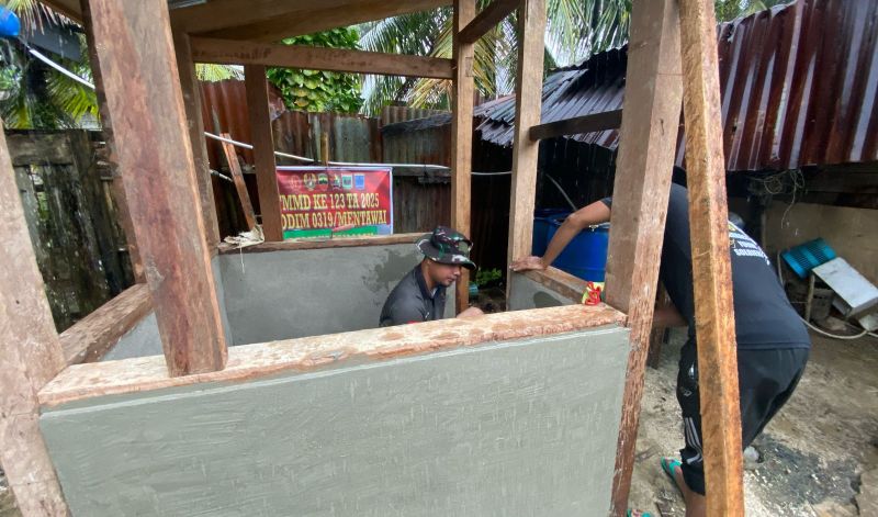 MINANGKABAUNEWS.COM, MENTAWAI – Satgas TMMD Ke- 123 terus berpacu menyelesaikan program yang akan dikerjakan. Salah satunya pembangunan MCK yang sudah capai 90 persen milik keluarga pak Zulfahmi.