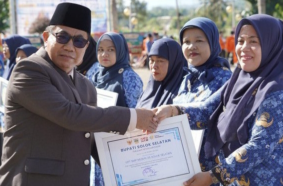 Padang Aro (Minangkabaunews) – Pemerintah Kabupaten Solok Selatan memperingati Hari Pendidikan Nasional dengan melaksanakan upacara sekaligus menyerahkan berbagai penghargaan bagi Lembaga Pendidikan dan Tenaga Pendidik berprestasi.