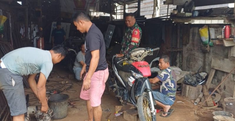 MINANGKABAUNEWS.COM, MENTAWAI – Mendukung kegiatan dan aktifitas warga binaan, Babinsa Koramil 04/Sikakap, Serda Marwi sambangi bengkel.