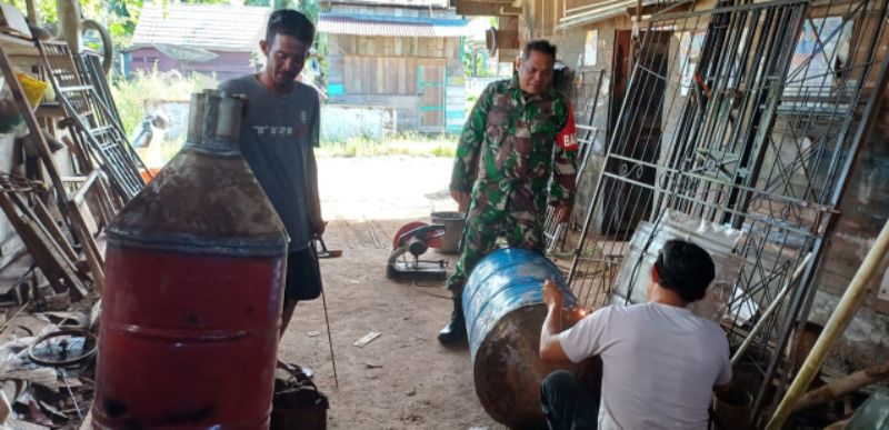 Babinramil kali ini, menyambangi tukang bengkel yang sedang melakukan kegiatan pembuatan alat penyuling Nilam. Selasa (11/11/2025)