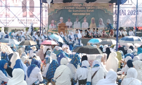 Dia menyampaikan terima kasih kepada Pemko Padang yang selalu bersinergi dengan BKMT Kota Padang maupun Sumbar sehingga bisa terlaksananya Tablig Akbar kali ini.