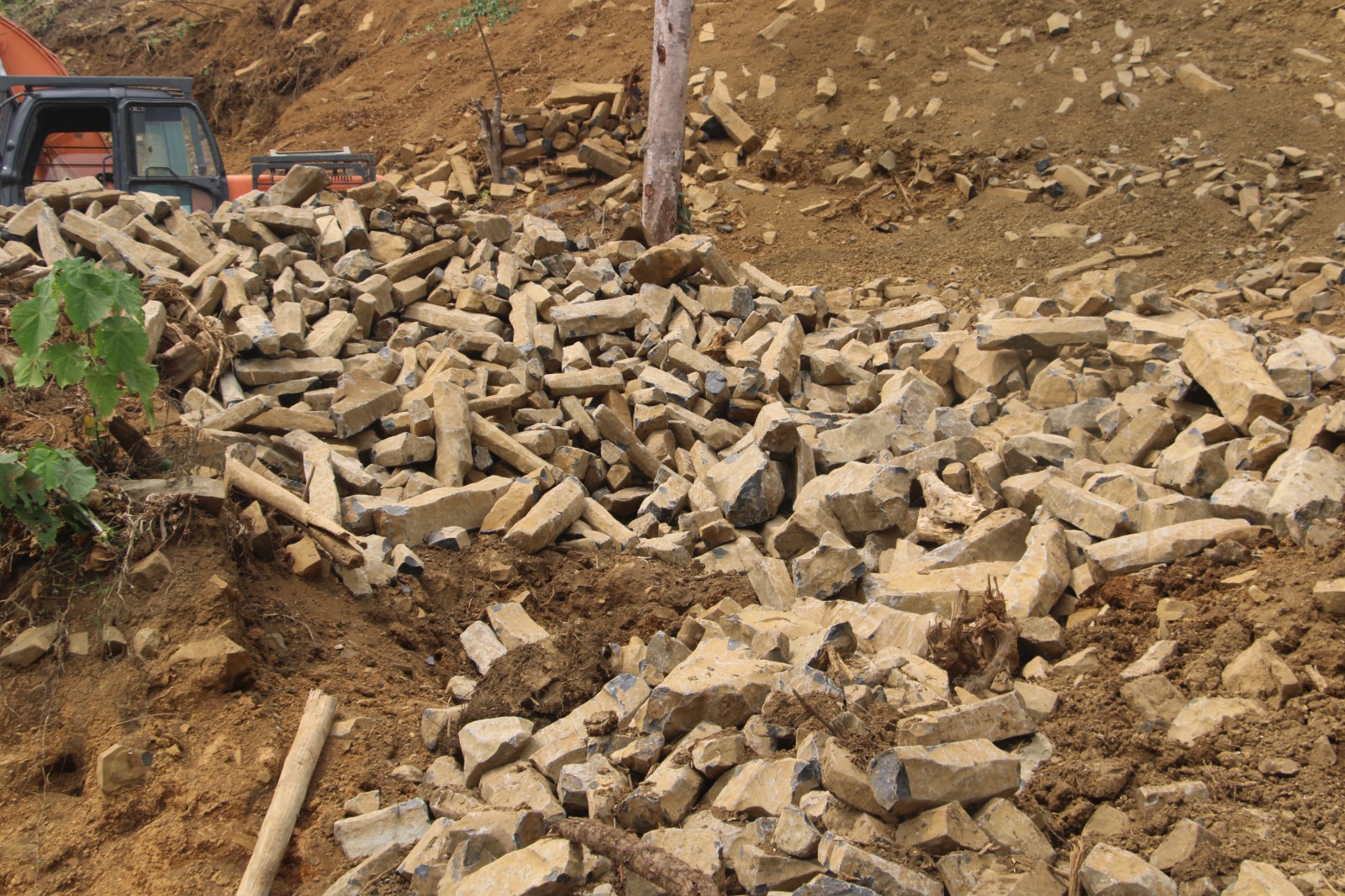 “Di dalam proses penambangan itu kemudian dijumpai banyak sekali tunggak dan balok-balok batu seukuran 2 meter atau lebih. Balok-balok batu itu ada yang berbentuk empat persegi tonggak (pillar). Ada diantaranya diberi hiasan berupa garis-garis lurus, bahkan juga dijumpai lesung batu, dan perkakas dari batu berbentuk kapak,” sebutnya yang didampingi Kasi nya Dt Sabardi.