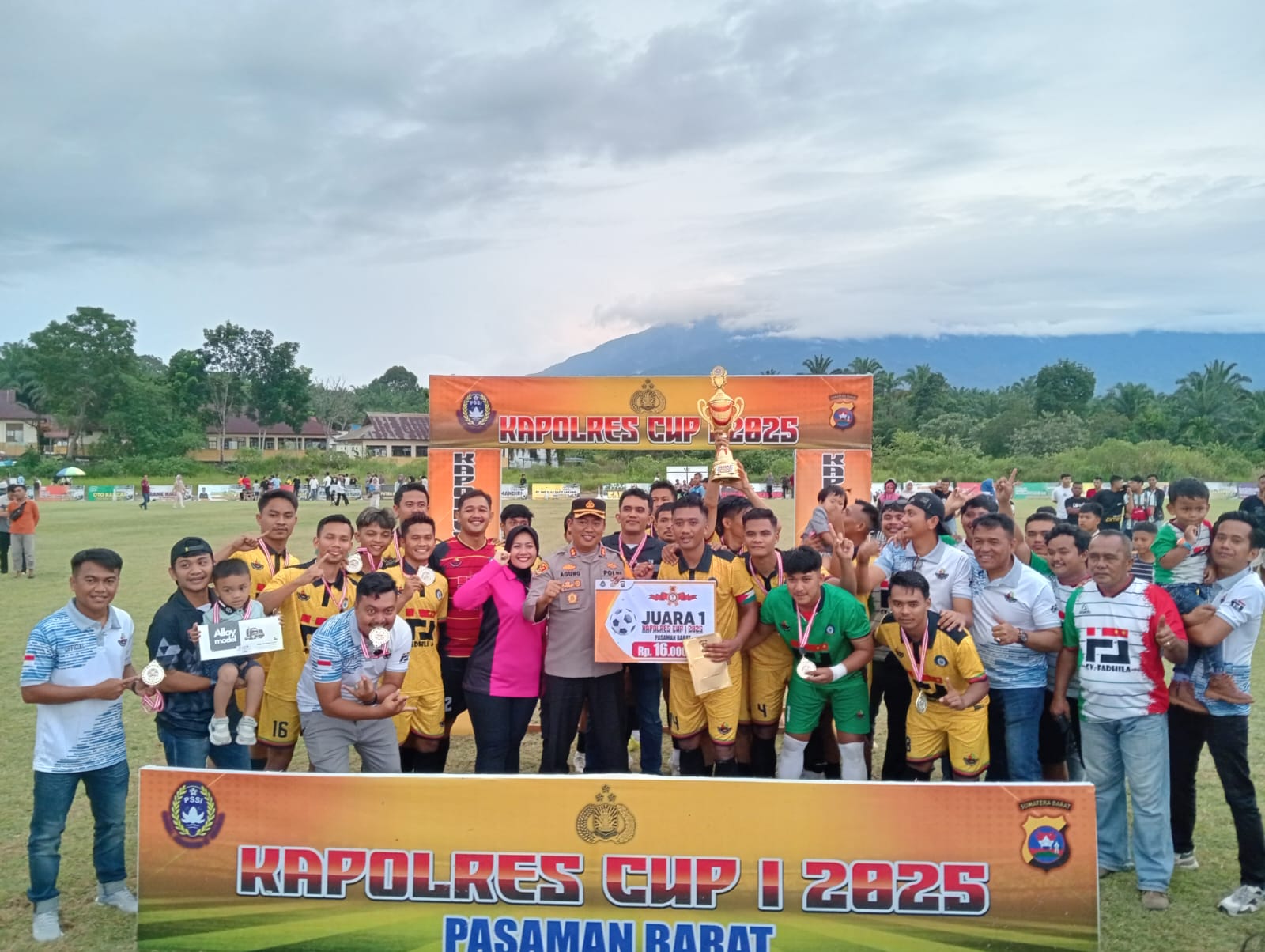 “Terima kasih kepada seluruh panitia pelaksana, para Pejabat Utama (PJU) dan personel Polres Pasaman Barat, Pemerintah Daerah Pasaman Barat, unsur Forkopimda dan stakeholder terkait lainnya, serta pihak sponsor yang telah mendukung kegiatan Open Turnamen Kapolres Cup I 2025,” ucapnya.