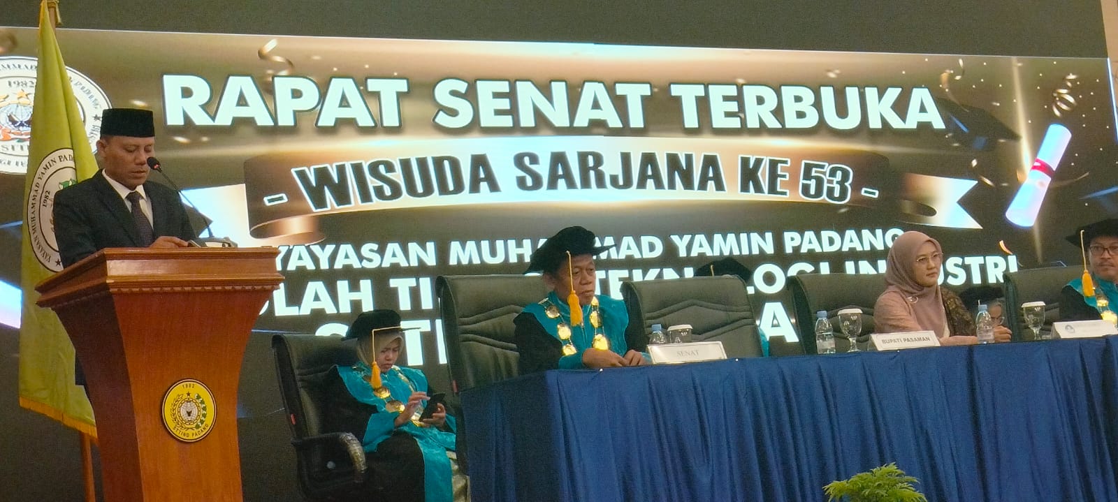 Padang, Sabar AS Bupati Pasaman memberikan orasi ilmiah pada Rapat Senat Terbuka Wisuda Sarjana ke 53 Sekolah Tinggi Teknologi Industri (STTIND) Padang. Sabtu (23/12) di Aula Sati Hall Pangeran Beach Hotel Padang.