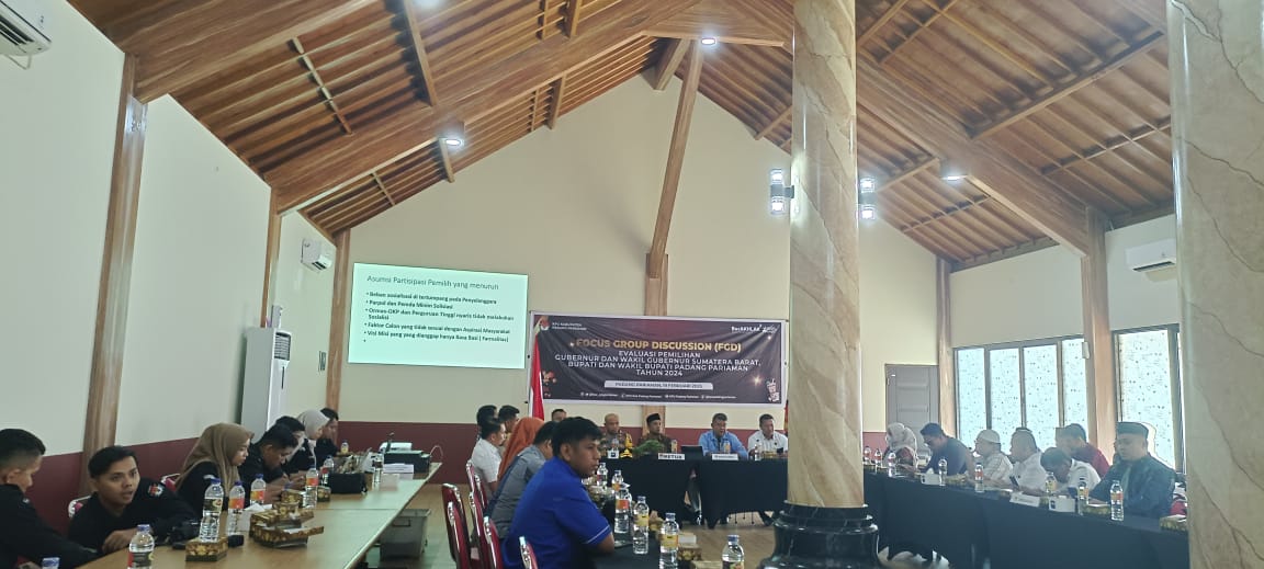 MINANGKABAUNEWS.COM,Padang Pariaman — Komisi Pemilihan Umum KPU Padang Pariaman menyelenggarakan Focus Group Discussion (FGD) Evaluasi Pemilihan Gubernur dan Wakil Gubernur Sumbar serta Bupati dan Wakil Bupati Padang Pariaman, Rabu (19/2). Acara ini dihadiri oleh unsur Forkompimda Padang Pariaman, Bawaslu, perwakilan partai politik, unsur tim pemenangan dan lainnya.
