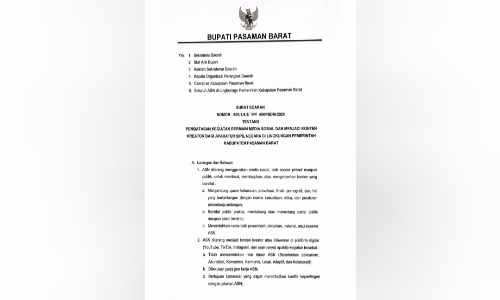 MINANGKABAUNEWS.com, PASAMAN BARAT — Pemerintah Kabupaten Pasaman Barat mengambil langkah tegas untuk menjaga integritas dan netralitas Aparatur Sipil Negara (ASN) di era digital. Melalui Surat Edaran Nomor 800.1.6.2/1641/BKPSDM-2025, Pemkab Pasaman Barat secara resmi memberlakukan pembatasan kegiatan bermain media sosial dan menjadi konten kreator bagi seluruh ASN di lingkungan pemerintah daerah.