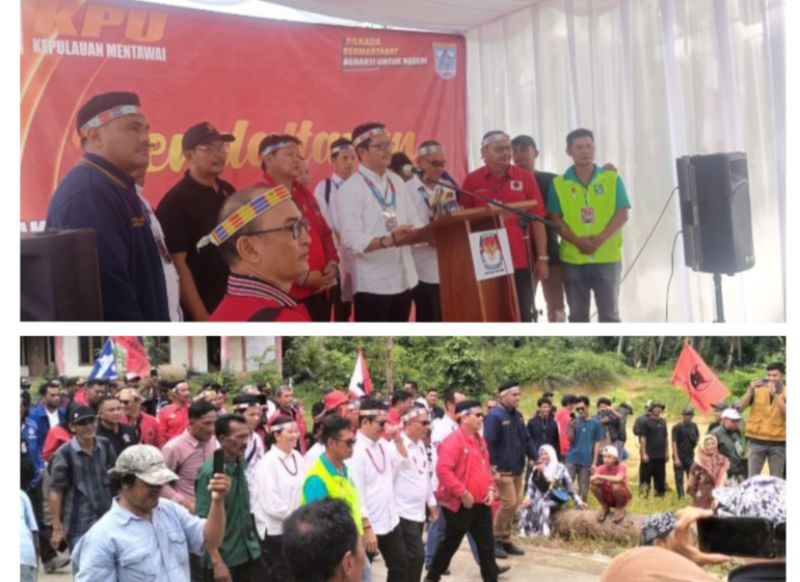 “Pendaftaran kita sudah selesai dan menunggu tahapan berikutnya, yakni tes Kesehatan di RSUD M. Jamil Padang pada hari Minggu tanggal 1 September 2024. Kami berterimakasih kepada KPU dan Bawaslu yang telah memfasilitasi dan juga tim relawan Mentawai Simaeruk serta partai pengusung PDI-P dan empat partai pendukung, yakni, PAN, Garuda, PKB dan PKS,” ungkap Rijel Samaloisa didampingi Yosep Sarokdok.
