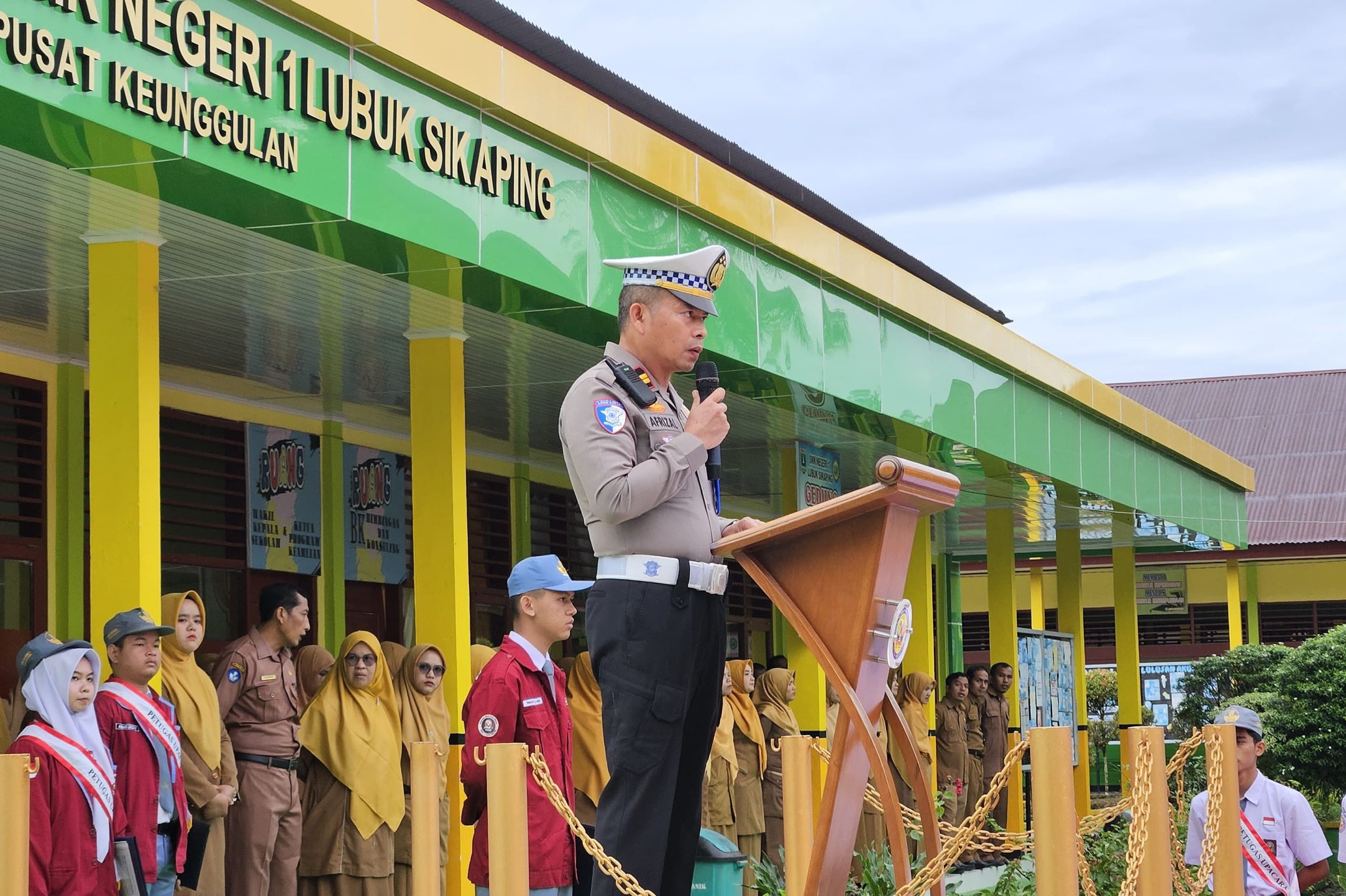 Selain memberi peringatan, Iptu Afrizal juga memotivasi siswa untuk mengisi masa muda dengan hal-hal positif. Beliau mengajak seluruh peserta upacara untuk menjadi teladan di lingkungan masing-masing, memanfaatkan waktu untuk belajar, berkarya, dan mengukir prestasi. Pesan khusus juga diberikan terkait tertib berlalu lintas, mengingat banyak pelajar yang mulai mengendarai sepeda motor. “Gunakan helm, patuhi rambu, dan ingat, keselamatan itu bukan hanya untuk kalian, tapi juga untuk orang-orang yang kalian cintai,” ujarnya.