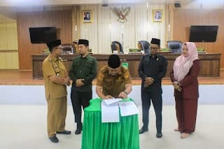 Bupati Welly Suhery menyampaikan apresiasi kepada seluruh unsur pimpinan dan anggota DPRD yang telah bekerja keras melakukan pembahasan secara mendalam hingga Ranperda APBD 2026 berhasil disepakati tepat waktu.
