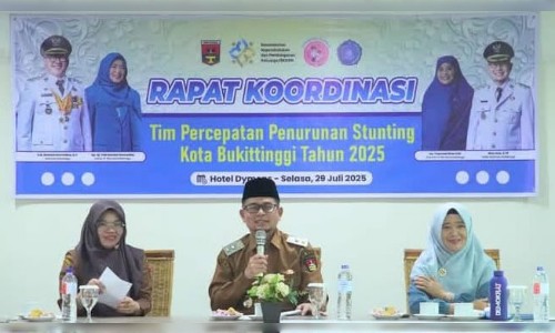 MINANGKABAUNEWS.com, BUKITTINGGI – Pemerintah Kota Bukittinggi menggelar rapat koordinasi tim percepatan penurunan stunting (TPPS) tingkat Kota Bukittinggi. Kegiatan ini dibuka langsung oleh Wakil Wali Kota Bukittinggi di Hotel Dymens, Selasa (29/7/2025).