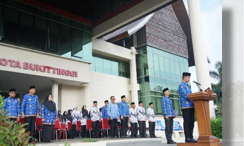MINANGKABAUNEWS.com, BUKITTINGGI – Pemerintah Kota (Pemko) Bukittinggi menggelar upacara bendera dalam rangka memperingati Hari Ulang Tahun (HUT) Korps Pegawai Republik Indonesia (Korpri) ke-52, Hari Guru dan HUT PGRI ke-78 Tahun 2023, berlangsung di halaman Balai Kota Bukittinggi, Rabu (29/11/2023).