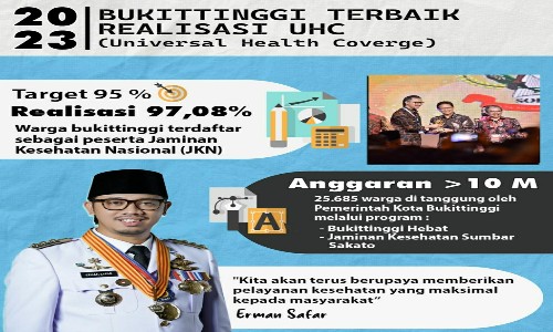 MINANGKABAUNEWS.com, BUKITTINGGI -Pemerintah Kota (Pemko) Bukittinggi menjadi kota terbaik dalam merealisasikan program Universal Health Coverge (UHC) di Provinsi Sumatra Barat di tahun 2023.