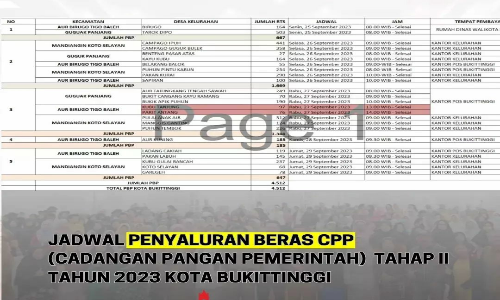 Kemudian penyaluran Rabu (27/9) untuk Kelurahan ATTS, BKCR, Bukik Apit Puhun, Kubu Tanjung, Parit Antang disalurkan di kantor Pos Cabang Bukittinggi.