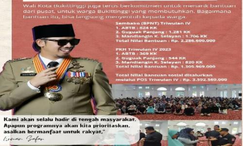 Ia sebut, Wali Kota Bukittinggi juga terus berkomitmen untuk menarik bantuan dari pusat, untuk warga Bukittinggi yang membutuhkan.