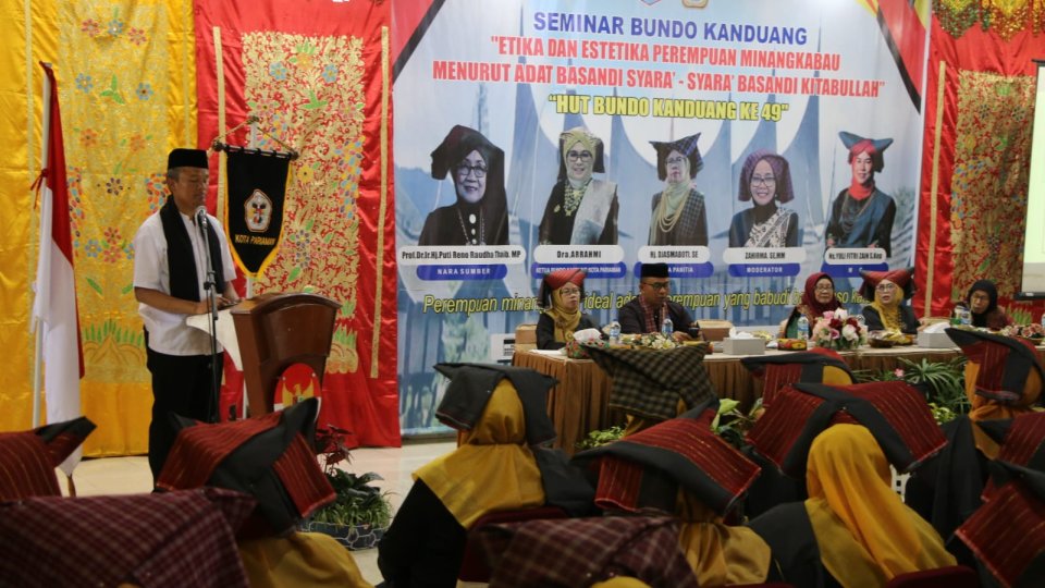 “Diketahui bahwa fungsi utama bundo kanduang adalah sebagai perempuan minagkabau dan limpapeh rumah nan gadang yang mewariskan nilai-nilai adat dan budaya dalam keluarga sebagai memfilter supaya anak-anak kita tidak terjerumus budaya yang tidak benar”, terangnya.