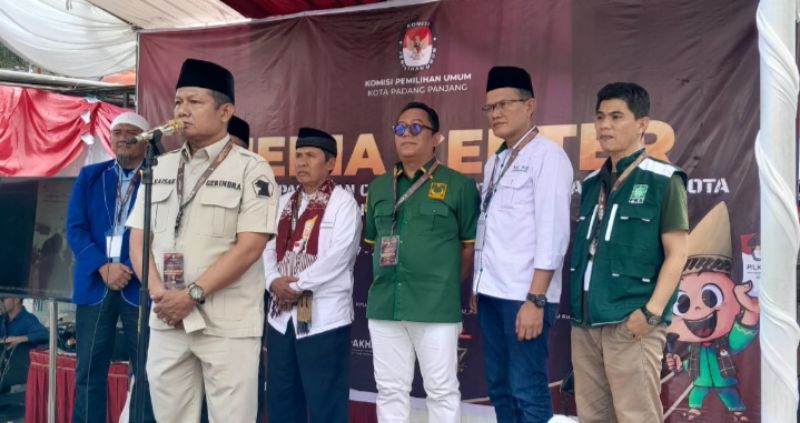 MINANGKABAUNEWS.COM,PADANG PANJANG – Pendaftaran pasangan calon Walikota dan Wakil Walikota Padang Panjang Pilkada serentak 2024, pasangan calon Nasrul Naga-Eri Dt Majo Endah, datang ke KPU Padang Panjang untuk mendaftarkan diri diantar relawan dan partai pendukung Gerindra, Demokrat, PKB dan PBB, Kamis (29/8/2024).