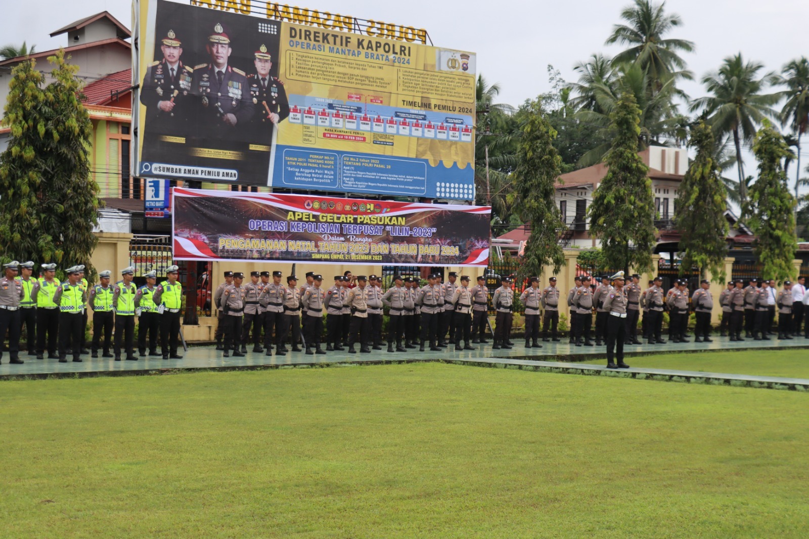 Kapolres Pasaman Barat AKBP Agung Basuki dalam amanat Kapolri menyampaikan, apel gelar pasukan sebagai bentuk pengecekan akhir kesiapan para personel yang bertugas maupun sarpras yang akan digunakan selama pelaksanaan Operasi Lilin tahun 2023, sehingga pengamanan perayaan Natal 2023 serta Tahun Baru 2024 (Nataru) dapat berjalan dengan optimal.