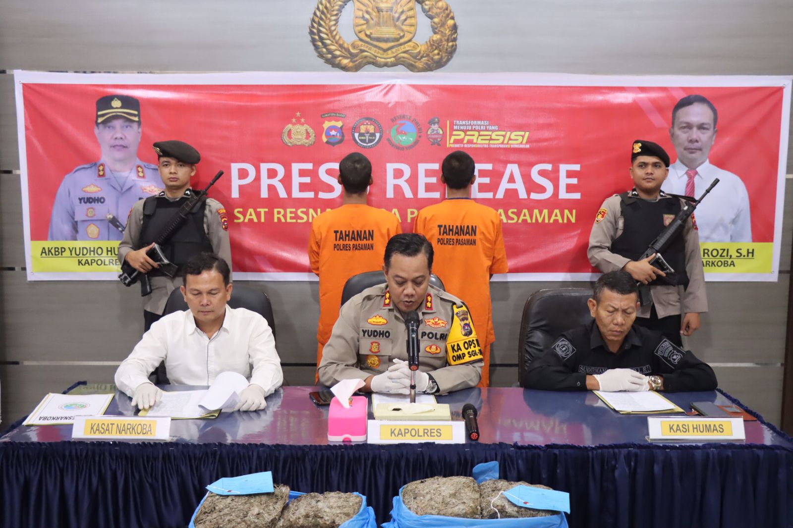 Dalam press release yang di pimpin Kapolres Pasaman AKBP Yudho Huntoro, S.IK.,M.IK menyampaikan, tersangka kasus ini inisial MI (26) dan TP (22) yang berasal dari Bukittinggi.