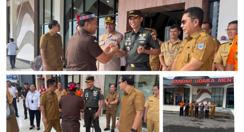 MINANGKABAUNEWS.COM, MENTAWAI – Bentuk penghormatan dan soliditas sesama instansi vertikal, Forum Komunikasi Pimpinan Daerah (Forkopimda) Mentawai, Dandim 0319 Mentawai Letkol Inf Bambang Budi Hartanto turut hadir dalam penyambutan Kepala Kejaksaan Negeri (Kejari) Kepulauan Mentawai yang baru, R. H. Yani, S.H., M.H., di Bandara Udara Mentawai, Selasa (4/11/2025).