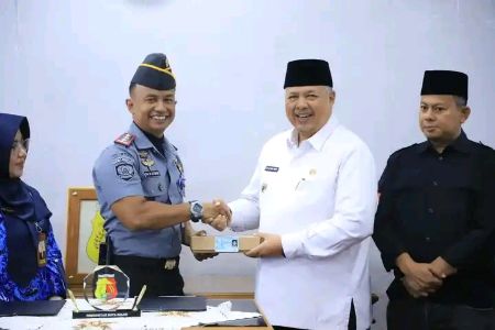 Walikota Solok Zul Elfian Umar juga menyerahkan E-KTP pada Kepala Lembaga Pemasyarakatan Kelas IIB Solok, Rio Mulyadi Sitorus.