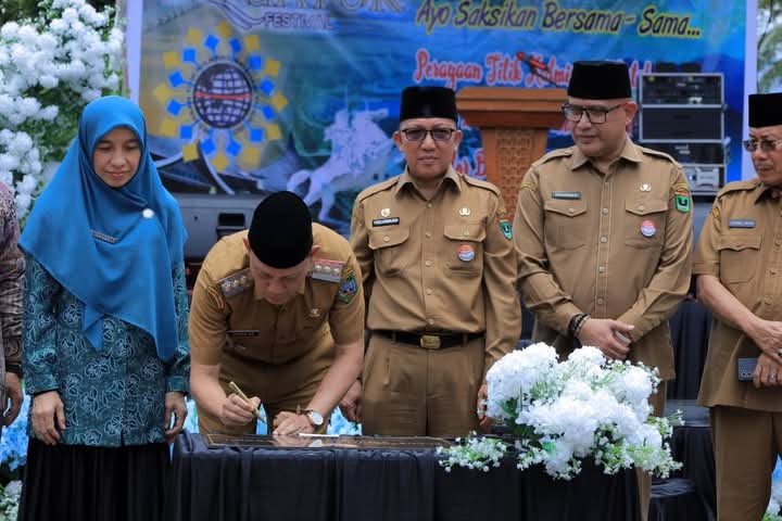 Bonjol, Minangkabaunews.com – Bupati Pasaman Sabar AS menghadiri Perayaan Titik Kulminasi Matahari Tahun 2025 dan Peresmian Planetarium Equator Bonjol di Taman Wisata Equator Bonjol, Senin (24/03/2025). Pada kesempatan itu, mewakili gubernur Sumatera Barat, Penjabat Sekretaris Daerah (Pj Sekda) Provinsi Sumbar Yozarwardi Usama Putra bersama bupati Pasaman Sabar AS menandatangani prasasti peresmian Planetarium Equator Bonjol.